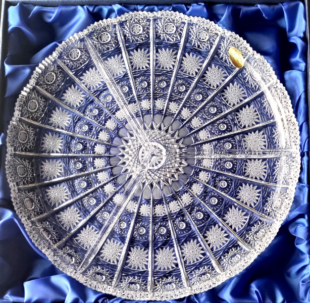 Ručně broušený třídílný talíř kabaret z pravého olovnatého křišťálu min. 24% PbO. Brus PK- pětistovka. Baleno v saténu s nápisem BOHEMIA CRYSTAL.