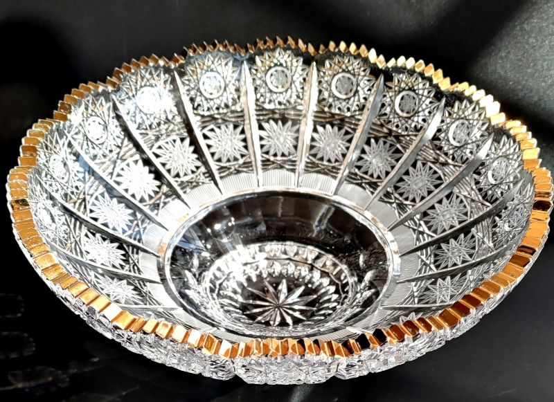 Ručně broušená a zlacená mísa z pravého českého křišťálu min. 24 % PbO. Brus PK- pětistovka.