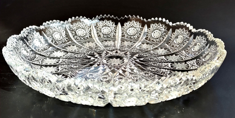 Luxusní ručně foukaný a broušený talíř z pravého olovnatého křišťálu min. 24% PbO o průměru 20 cm. Klasický brus PK pětistovka. Luxusně baleno v modré krabičce se saténovou výstelkou a logem Bohemia Crystal.