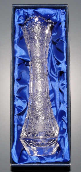 Broušená váza je vyrobena z ručně foukaného a broušeného olovnatého křišťálu min. 24% PbO. Brus Pk-pětistovka. Luxusně baleno v saténu s nápisem BOHEMIA CRYSTAL.